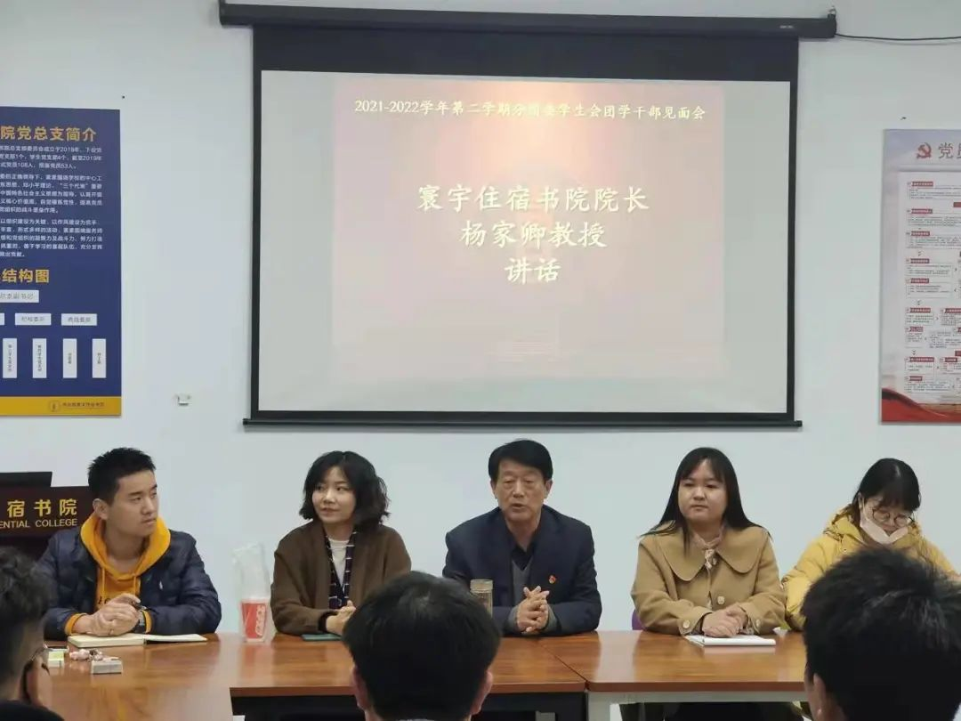 3月2日下午5时,寰宇住宿书院2021-2022学年第二学期分团委学生会干部见面会在党团活动室顺利召开。寰宇住宿书院院长杨家卿教授、学生主管毛会想、分团委书记李皎、育人导师辛文静和王梦飞出席会议,分团委学生会全体团学干部参加此次会议。