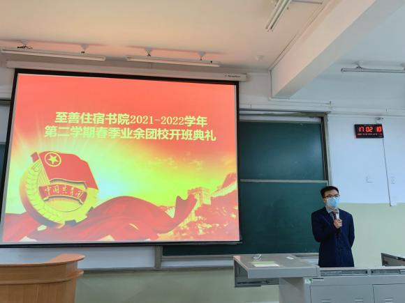 为深入学习贯彻习近平新时代中国特色社会主义思想,引导广大团员青年树立远大理想,厚植爱党爱国情怀,坚定走中国特色社会主义道路的理念。至善住宿书院分团委于3月10日下午在13-204教室组织召开了2021-2022学年春季团校开班典礼暨第一次团课培训。至善住宿书院党总支副书记施德杰、学生主管蔡震昊老师以及全体育人导师出席此次会议。本次开班典礼由组织部部长李渊博主持。