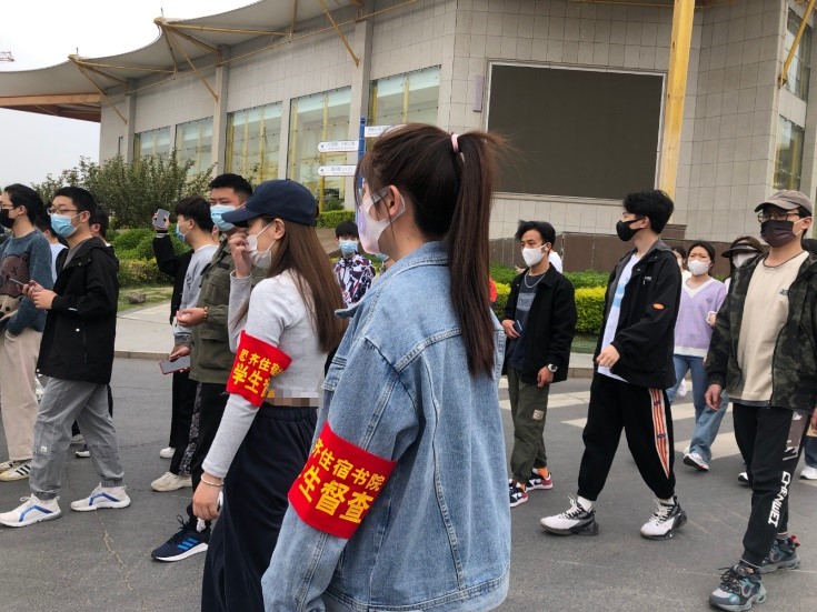 文明是一种习惯,防控是一份责任。疫情防控工作已经进入常态化管理,每一位学生在做好个人防护工作的同时,也应配合志愿者的工作,正确佩戴口罩,不扎堆,不聚集,对他们的奉献充满感恩之心。学校也会坚决守牢校园疫情防控阵地,及时调整防控方案,科学细致做好防控,让家长放心,让社会放心。