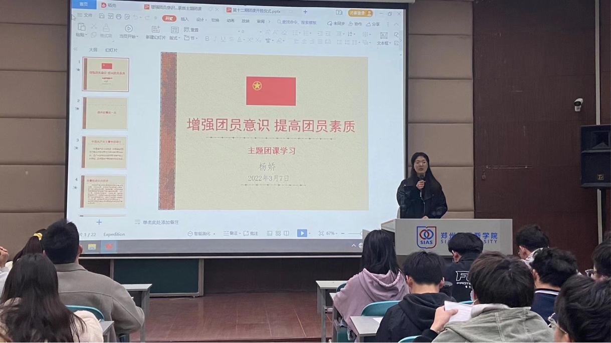 首先,全体起立奏唱中华人民共和国国歌以及共青团团歌,由书记助理史思雅带领大家重温入团誓词,开班典礼正式开始。