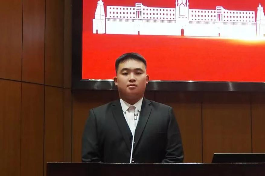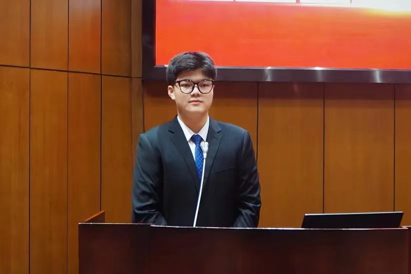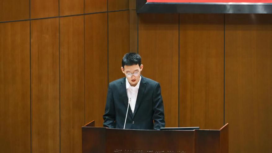 大会第三项,校学生会主席团代表张宇翔发言。
