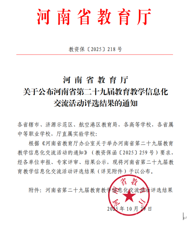 我校14项成果荣获河南省第29届教育教学信息化交流... 2025-11-17