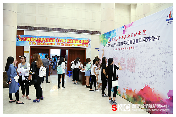 5月28日上午,由我校就业创业工作处、西亚斯校友总会主办的校友企业专场招聘暨创业项目对接会在行政楼一楼招生就业服务大厅举行。来自好想你枣业、无不维(北京)科技、义乌市佰美电子商务、万和证券河南分公司等近40家在各个领域崭露头角的校友企业回到母校,为应届毕业生提供500多个就业岗位,在一天的活动中,共吸引了1000多名毕业生前往应聘,有签约意向的毕业生达300多名,实现成功对接的学生创业项目有12个。