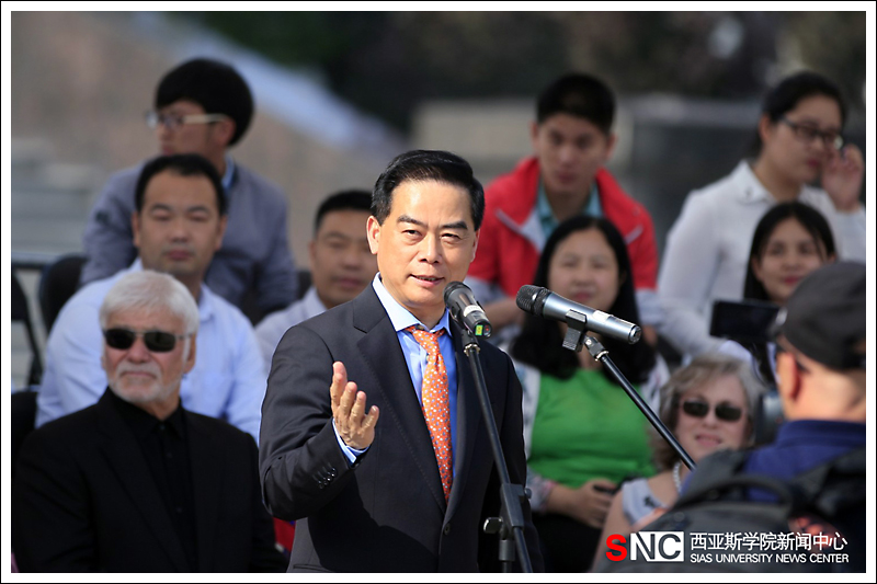 庄严肃穆的国歌奏唱过后,陈肖纯理事长介绍来宾并致欢迎辞。他讲到,西亚斯国际学院是一所年轻而又国际化的大学,一直秉持中西合璧、实施国际化全人教育、培养复合型实用人才的办学宗旨。“访校日”是学生、家长和社会各界齐聚校园,共鉴办学成果,回顾过去,展望未来,共商学校发展大计的盛会,诚邀大家共同感受学校的良好氛围、人才培养模式、办学目的以及办学理念。