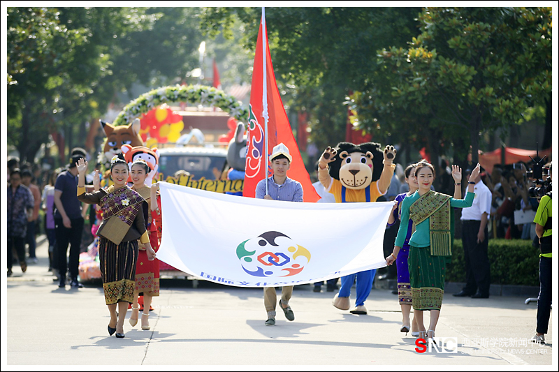 上午8时许,伴着激昂的音乐,以“教育国际化”为主题的花车巡游表演拉开访校日的序幕。一辆辆由各院系学生、外籍教师和学生团体代表自己动手,结合相关文化特点,制作出的一个个创意奇特、看点十足的花车依次经过行政楼北广场进行展示,学生在感受校园文化生活快乐与诗意的同时,也在文化活动中了解学习了中西文化,提高了综合素质,孕育了创新精神,开拓了国际视野。