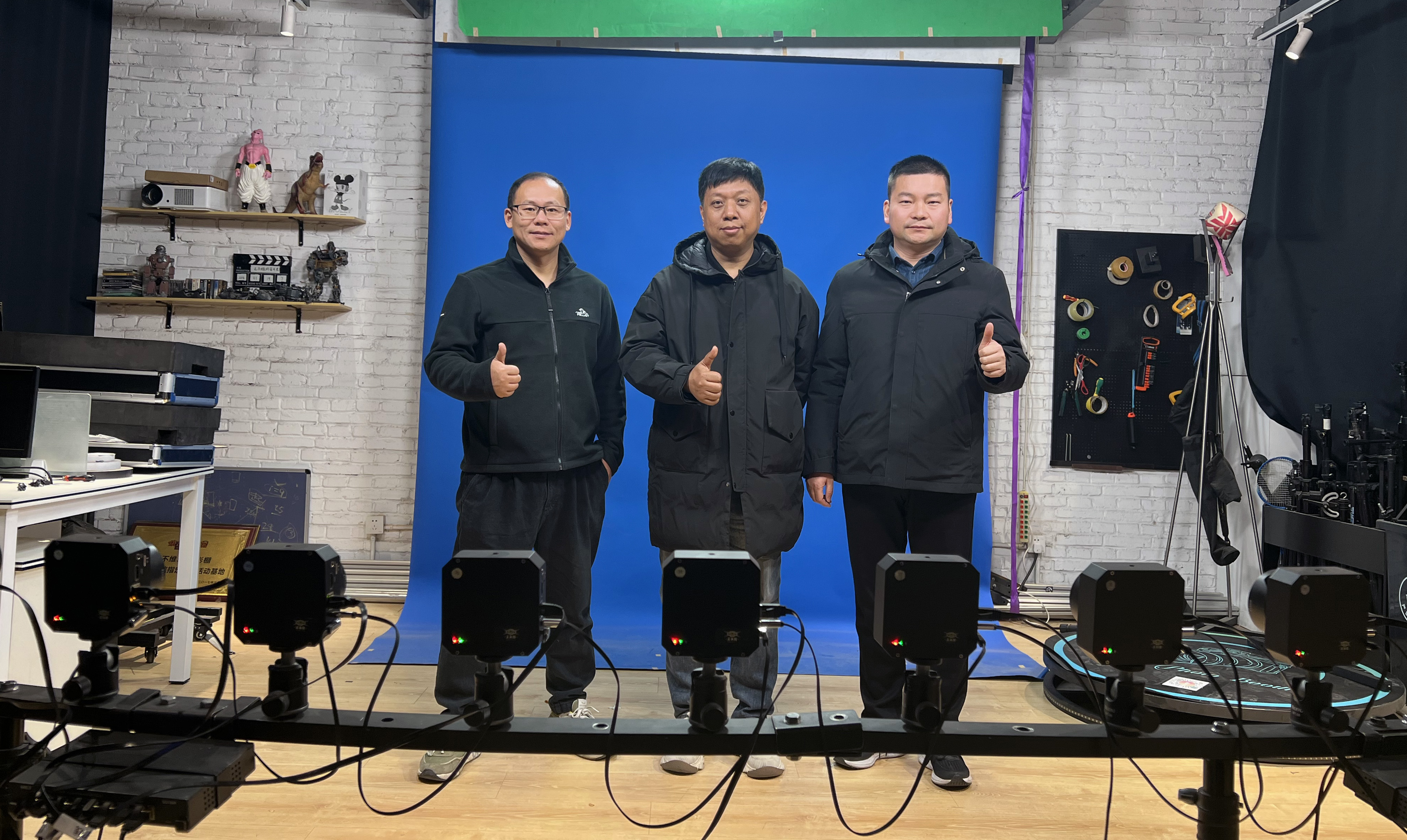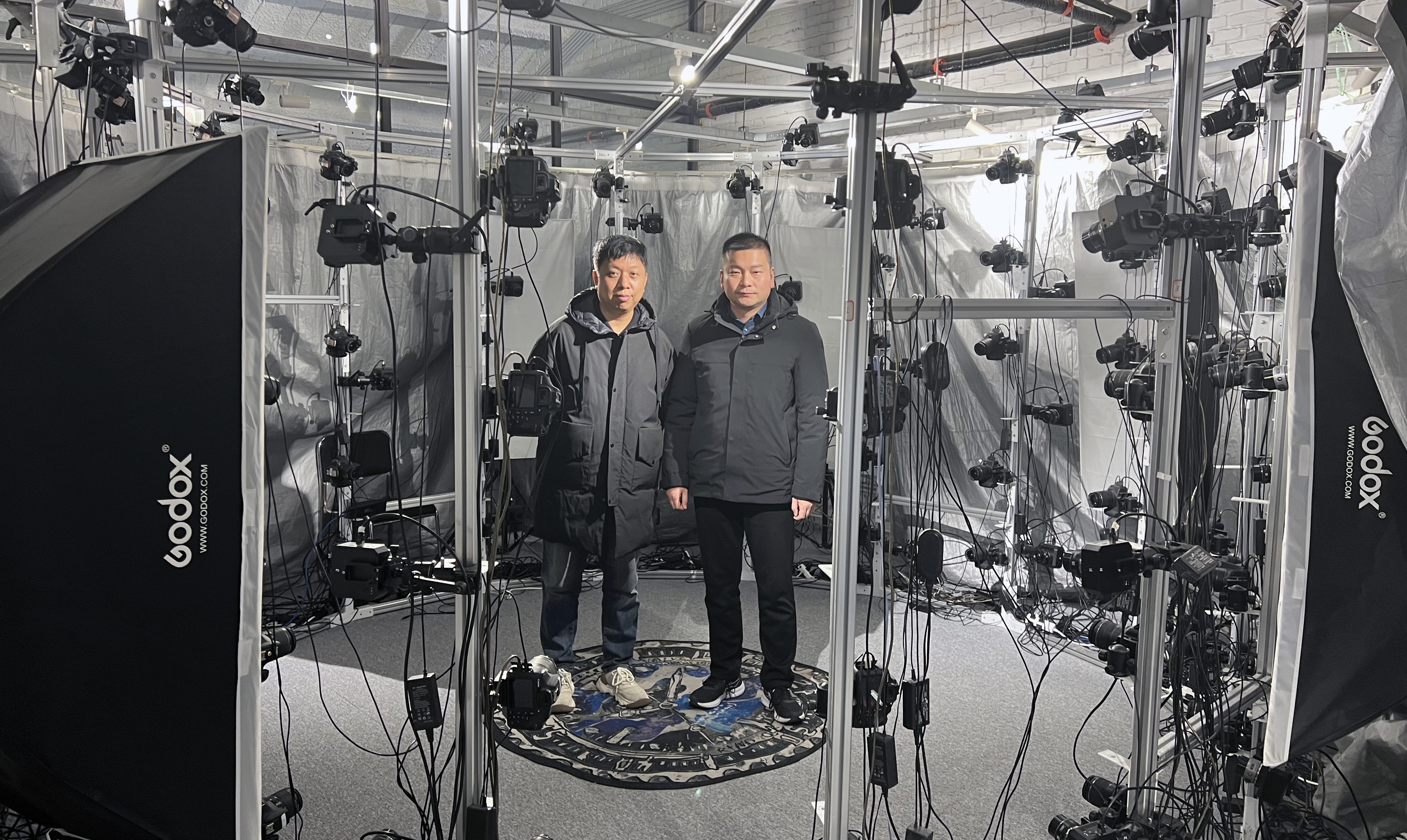 当天,在郭松杰总经理的全程热情接待下,游杰与王建明两位主任深入容积视觉的多个高科技实验室,沉浸式体验了三维数字人采集、子弹时间拍摄、VR虚拟展示等前沿技术应用场景。
