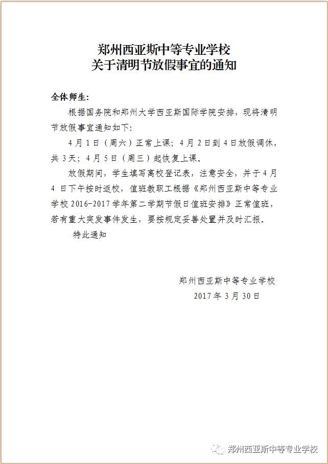 我校清明节放假安排