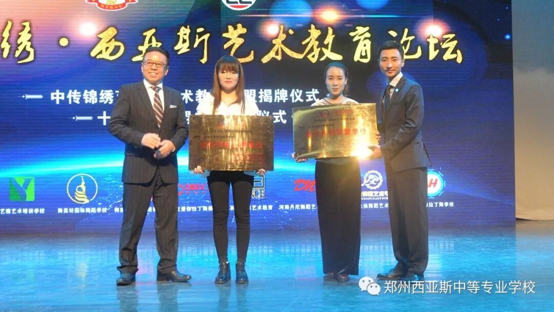 2018年4月19日,我校成功举办《中传锦绣•西亚斯艺术教育论坛》并成立中传锦绣•西亚斯艺术教育联盟。郑州大学西亚斯国际学院创始人、理事长 陈肖纯博士,中传锦绣(北京)教育科技有限公司董事长、世界舞蹈总会WDC副主席 袁斌先生,北京舞蹈学院研究生导师、教授 张平先生,世界舞蹈总会WDC国际级评审、考官 臧晓静女士,世界舞蹈总会WDC国际级评审、考官 刘思燕女士,悦红英艺术教育科技有限公司执行董事 李烜先生,郑州西亚斯中等专业学校校长 李鑫先生出席论坛,河南省各地市艺术类培训学校负责人等应邀参加。