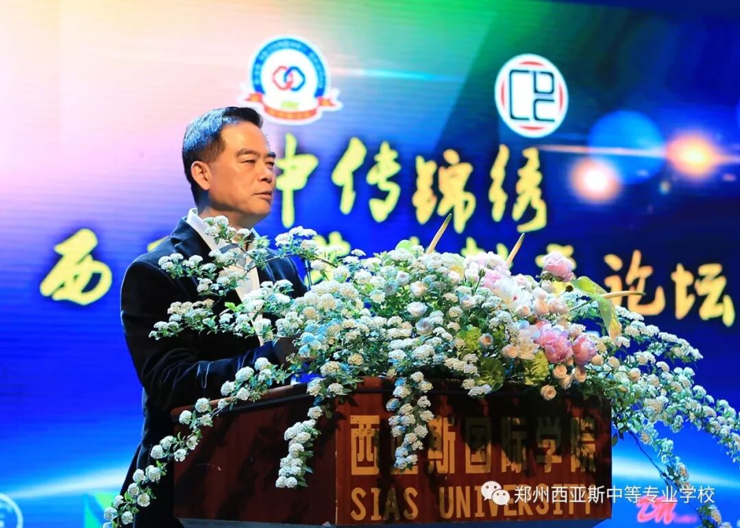 ▲郑州西亚斯中专校长李鑫 宣解中传锦绣•西亚斯艺术教育联盟的意义