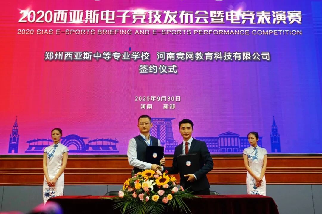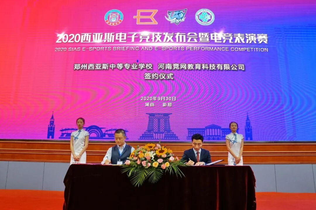 郑州西亚斯中等专业学校校长 李鑫、河南竞网科技有限公司 联合创始人 陈晓阳,上台签约;随着签约的完成,预示着西亚斯中专电竞专业秉承校企合作,产教结合的模式,电子竞技专业在西亚斯会逐渐发展壮大。