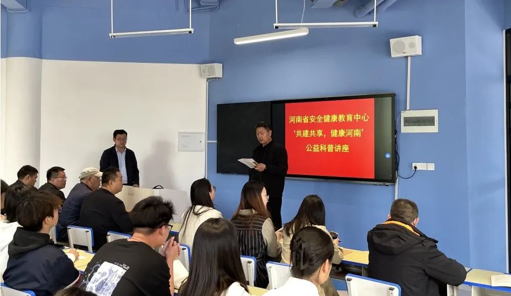 为推进健康中原建设,健全应急管理机制,贯彻落实全国卫生与健康大会精神,提高教职工健康意识和健康素养水平,引导广大教职工养成良好的生活方式和健康的生活习惯。我单位联合河南省安全健康教育中心开展“共建共享 健康河南”公益科普讲座。