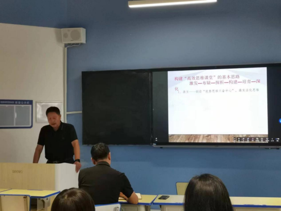 本次会议,以打造高效课堂为主题,对第一届课堂教学设计大赛作出了思政内容的要求,党支部书记李聪慧以构建“高效思维课堂”的基本策略为主题为全体教师做了一场报告,李书记指出构建高效思维课堂的基本思路是激发、布疑、探析、构建、培育、深化。要真正落实教学为王,课堂为王的目标,任课教师要不断强化业务学习,提高修养,丰富知识,驾驭课堂,正确传授知识;要体现思想意识的改变,教学设计的变化;高效课堂重要标志就是学生主动学习,积极思考。只要学生思考了,主动了,思维品质提高了,才能实现高效课堂。教师要结合学情,有效激发思维,问题解决策略,探析生成策略,认知构建策略,系统思维等方法,用人格魅力感染和影响学生,让学生在课堂中快乐、幸福、高效学习。