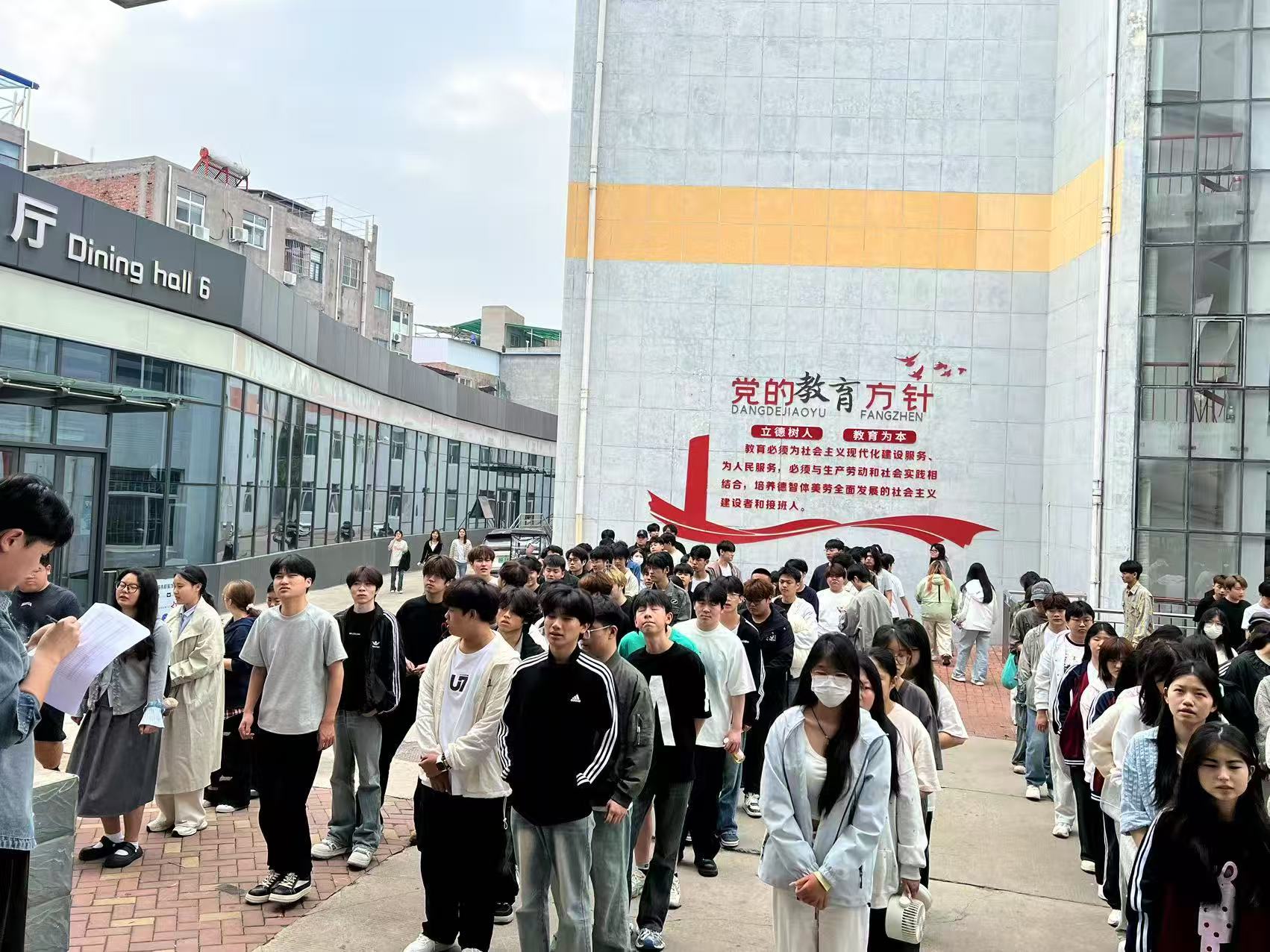 集合时间前,学生们有序来到集合地点,按照预先划分的区域列队站立。集合过程中,全体学生听从指挥,保持安静,展现出了良好的精神风貌。