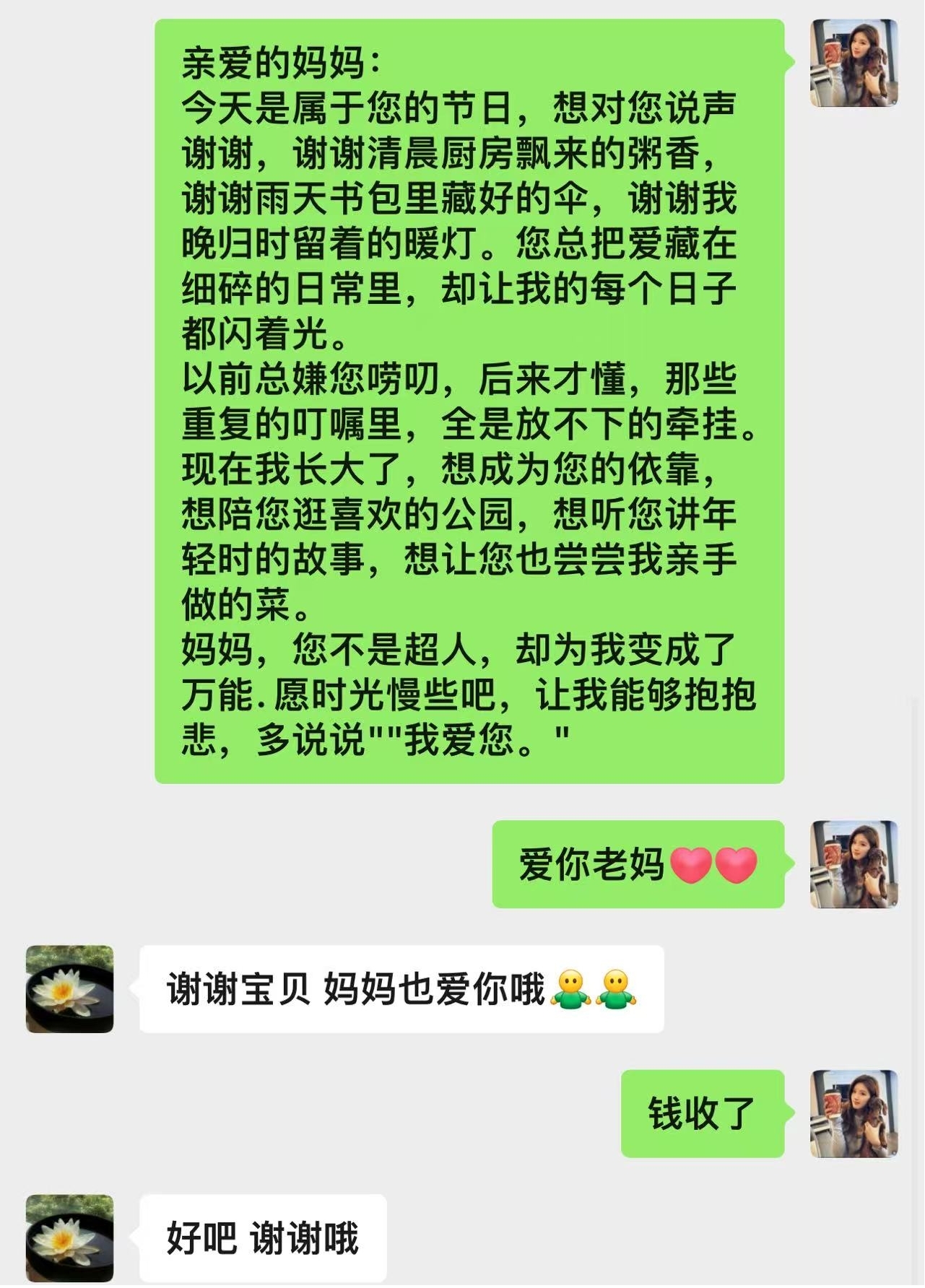 这个母亲节,除了说“我爱你”,我们还可以对妈妈说:“去追寻属于你的欢乐吧!”支持她重拾曾经的爱好,允许她偶尔“任性”,就像当年她放手让我们奔跑一样。真正的爱,不是束缚,而是为她的人生提供更多的成长空间。