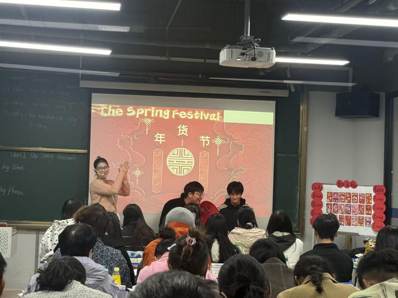 我校优质课比赛一等奖得主王彩艳老师,举办《The Spring Festival》英语公开课观摩活动,旨在发挥优质课引领作用,促教师能力提升与经验交流,全体教师参与并研讨课堂提问。开课以春节文化为载体,融传统节日教学与直播带货场景,王老师借视频、实物道具多模态教学,“模拟直播带货” 环节让学生用英语介绍年货,获良好效果。此次观摩研讨活动为教师们提供了宝贵的学习交流平台。