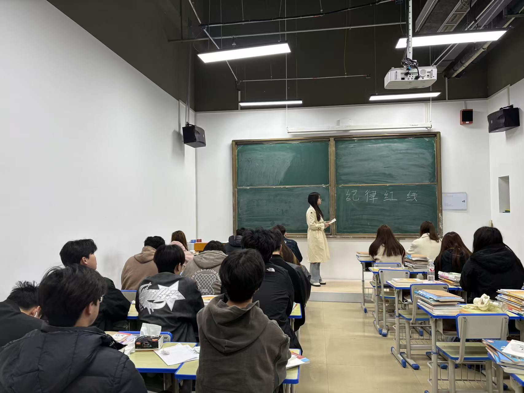 各班级同步开展主题班会,班主任系统宣讲“纪律红线”内容,重点强调打架斗殴、考试作弊、欺凌同学、夜不归宿、携带违禁品等行为的严重性及后果,结合《郑州西亚斯中等专业学校学生手册》细化日常行为规范,确保纪律要求入脑入心。
