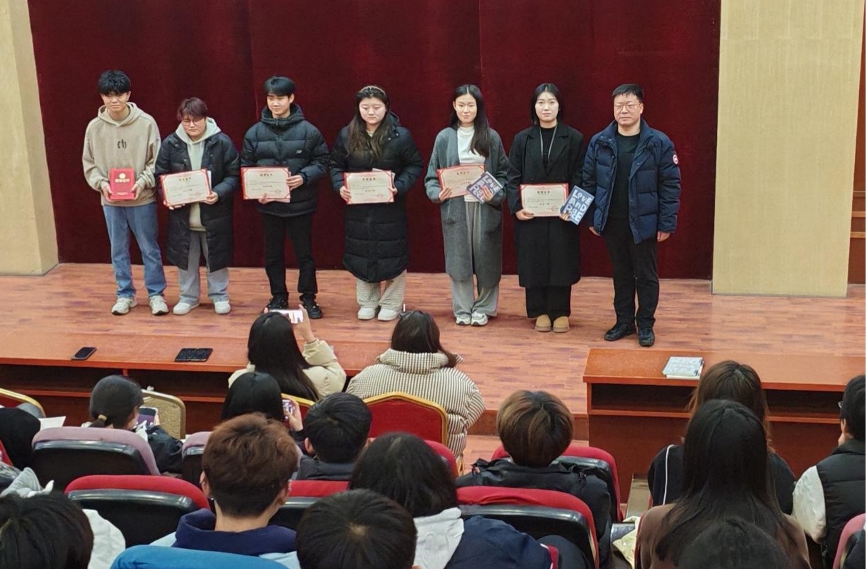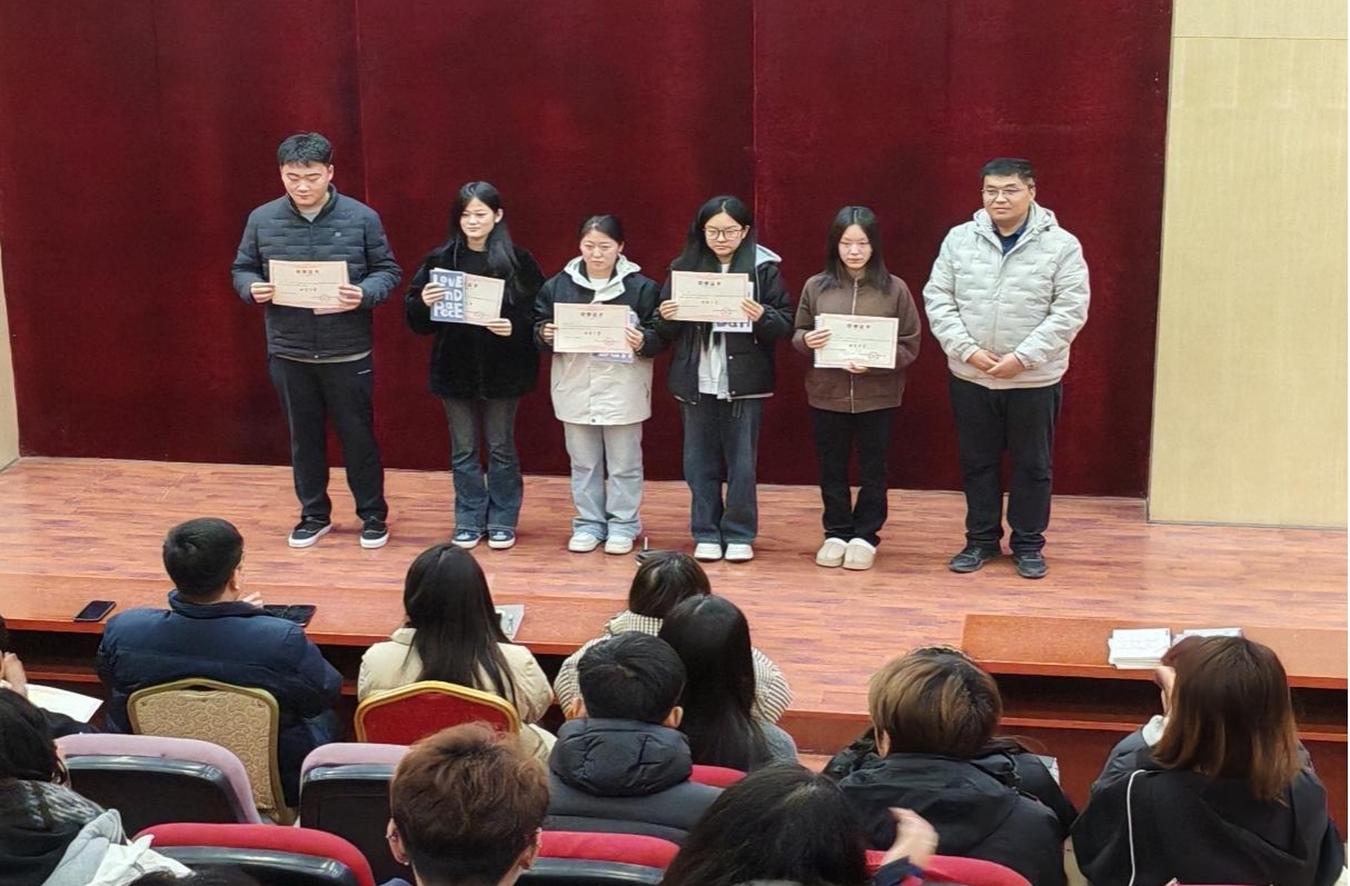 学务处干事、学生会负责老师胡杨林宣读表彰决定,对在过去一年中表现突出的19位优秀学生会干部进行了表彰。学务处韩军柱处长、杜英彬主管、柳萌园主管、毛蕾主管分别为获奖的优秀干事和干部颁奖并合影留念。获奖学生代表侯旭晋同学在发言中感谢学校的培养和老师的悉心指导,表示将珍惜荣誉、再接再厉,继续发挥模范带头作用,为学校发展贡献更多力量。