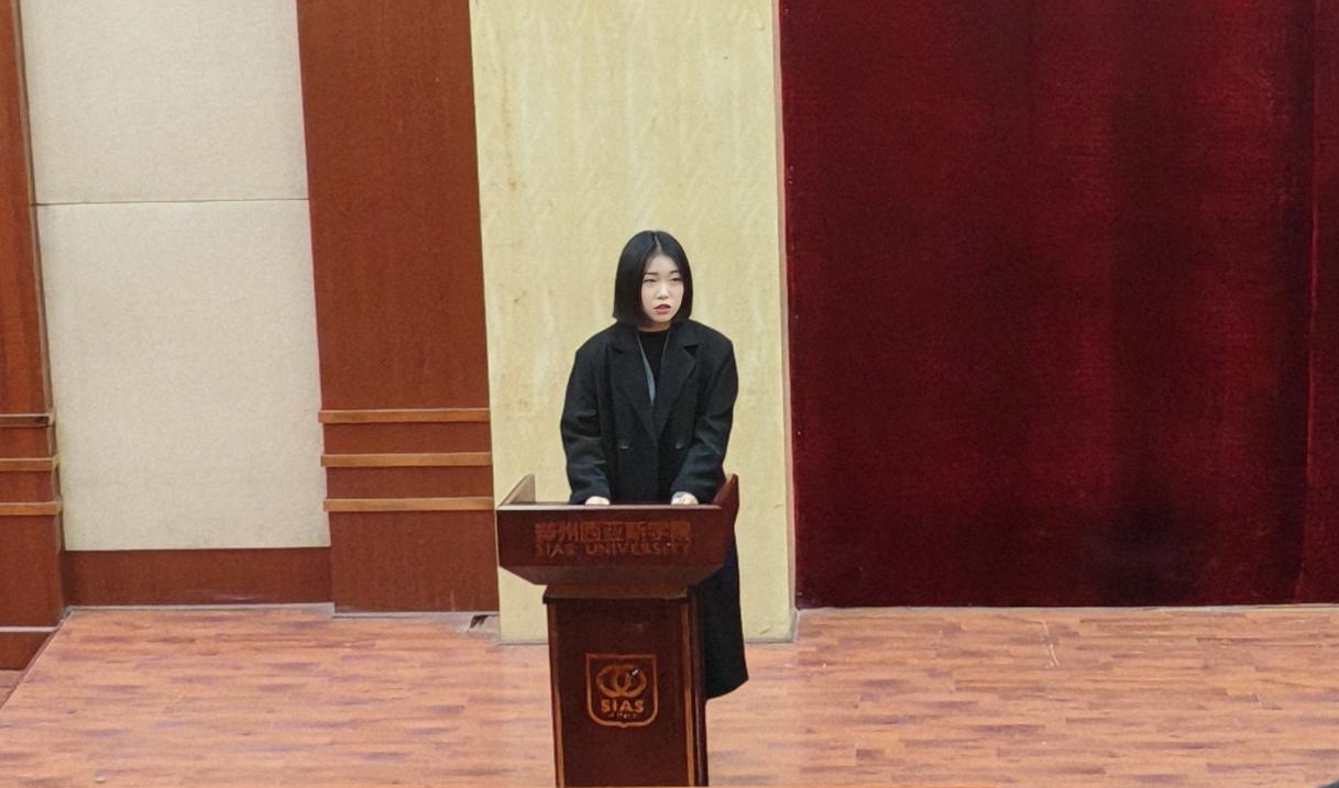 学生会主席周子含同学进行工作汇报。她回顾了过去一年学生会成员们齐心协力、奋勇拼搏的成长历程,从校园赛事的精心策划到学术交流的热烈探讨,再到日常检查的严谨认真,所有成就都凝聚着每一位成员的心血与汗水。周子含主席的发言,不仅表达了对学校、老师指导的感激之情,更表达了对伙伴一路同行的深深感恩。
